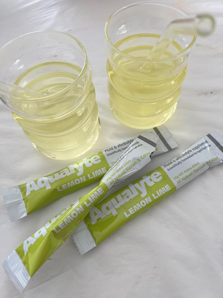 When mixed with water each sachet makes 600ml of Aqualyte.